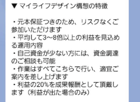 マイライフデザイン構想に関する口コミが寄せられたので共有させていただきます。寄せられた相談ワクワクしながら毎日作業してたらこちらのサイトに詐欺とありしょぼくれてます…まだ支払いも収入もないですが、ありがとうございました※解説これに悩んでしま...