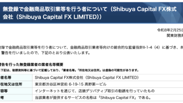 金融庁から警告 金融庁から警告、Shibuya Capital FX株式会社(Shibuya Capital FX LIMITED)の投資には注意