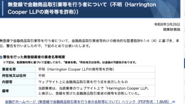 金融庁から警告 Harrington Cooper LLPに注意、金融庁から警告