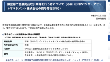金融庁から警告 BNPパリバ・アセットマネジメント株式会社に注意、金融庁から警告