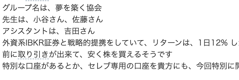 外資系IBKR証券と戦略的提携をしていて、リターンは、1日12% しかも、前場が開く前に取り引きが出来て、安く株を買えるそうです