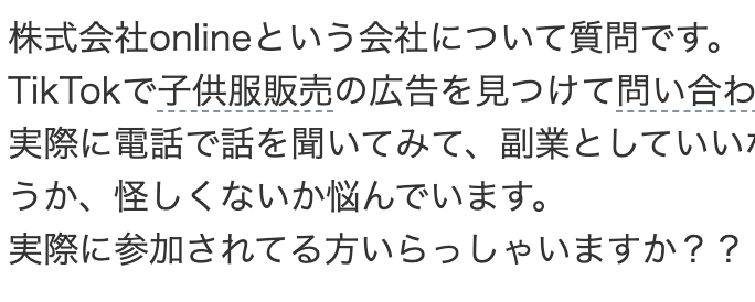 TikTokで子供服販売の広告を見つけて問い合わせをしました。