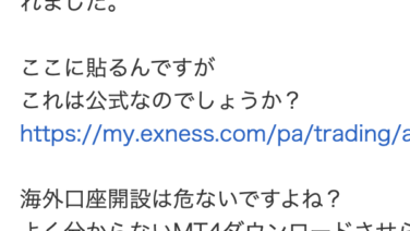 気になる口コミ(ヤフー知恵袋より)某マッチングアプリ利用したものです。1回目の時点で怪しいなとは思いつつ。2回目のデートでFXやってみない?って言われました。ここに貼るんですがこれは公式なのでしょうか?my.exness.com/pa/tr...
