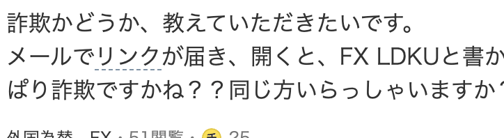 メールでリンクが届き、開くと、FX LDKUと書かれたサイトにつながりました。やっぱり詐欺ですかね??同じ方いらっしゃいますか?