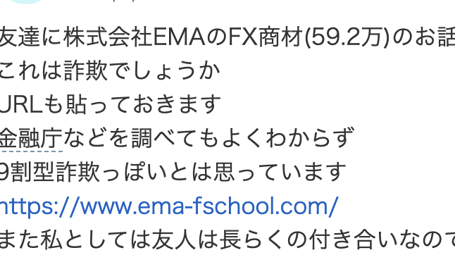 友達に株式会社EMAのFX商材(59.2万)のお話をされました。