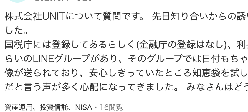 株式会社UNITについて質問です。 先日知り合いからの誘いで投資塾の説明を受けました。