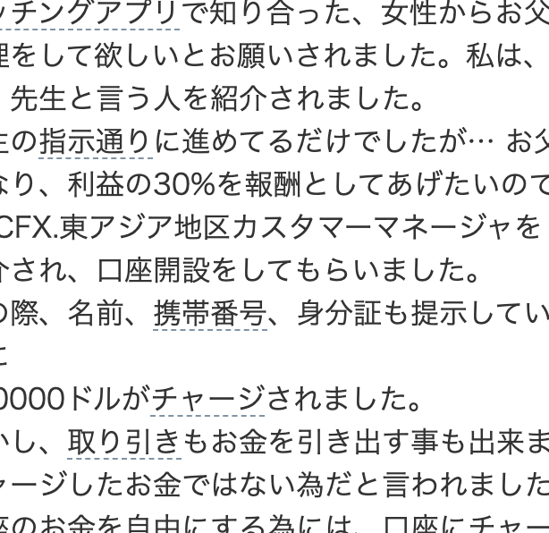 マッチングアプリで知り合った、女性からお父さんが倒れて、暫くの間『GTCFX』の管理をして欲しいとお願いされました。私は、何も知らないので出来ないと伝えると、先生と言う人を紹介されました。