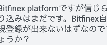 Bitfinex platformですが信じられますか?金銭の振り込みはまだです。Bitfinex自体がアクセス制限で新規登録が出来ないはずなのですが?如何なものでしょうか?