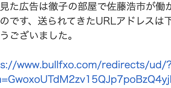 私が見た広告は徹子の部屋で佐藤浩市が働かなくても投資でお金が増えると言うものです、送られてきたURLアドレスは下記です。