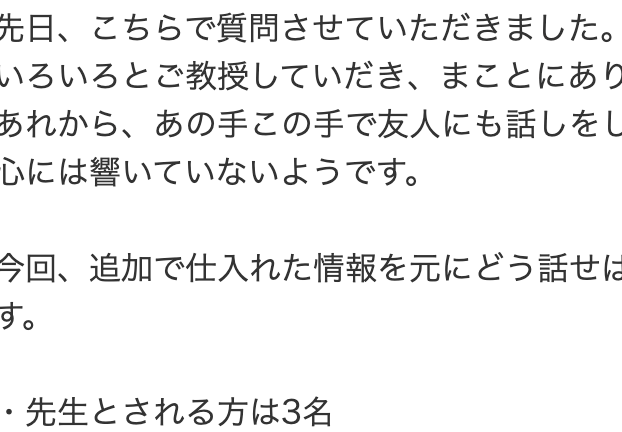 友「きっと詐欺なら人を増やしたいよね?でもその先生はこれ以上人を増やしたくないみたいなんだよね~」とも。