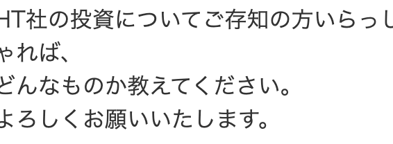 HT社の投資についてご存知の方いらっしゃいますか?実際に経験された方がいらっしゃれば、
