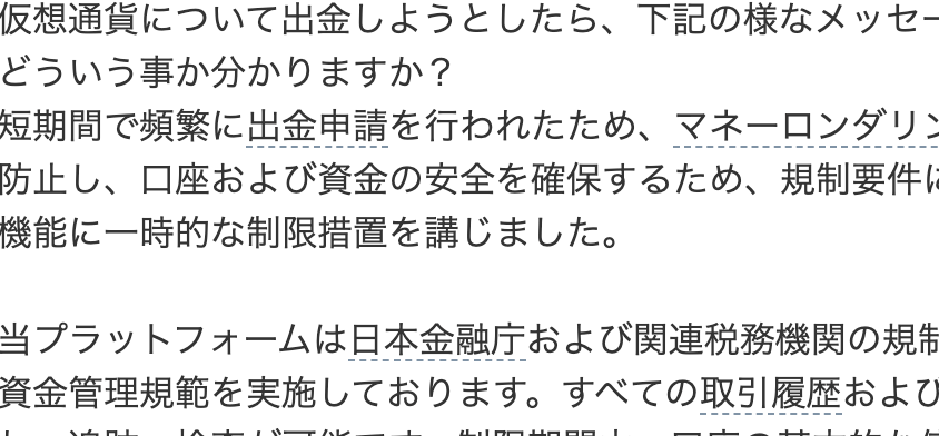仮想通貨について出金しようとしたら、下記の様なメッセージが来ました。