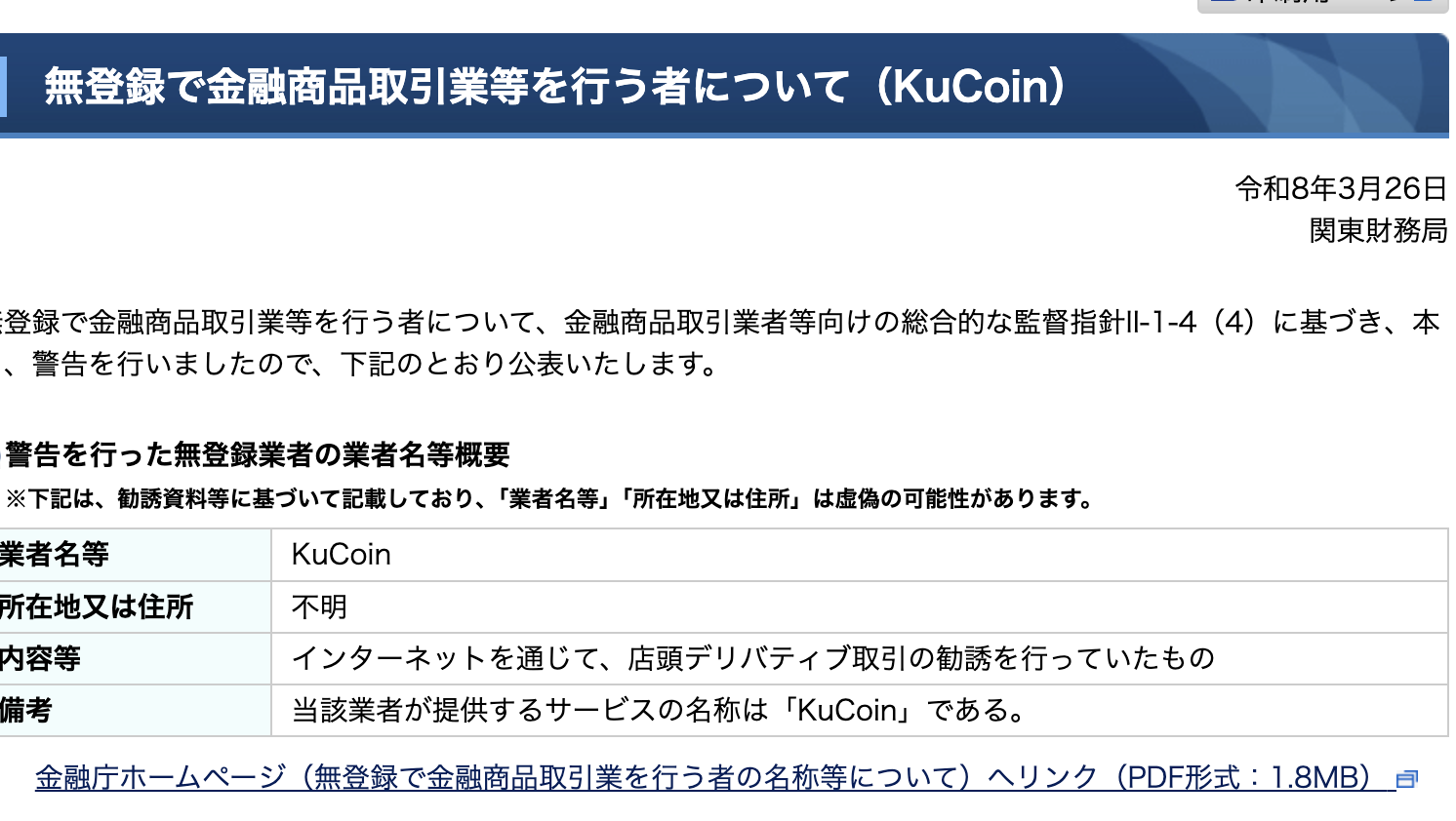 無登録で金融商品取引業等を行う者について(KuCoin)
