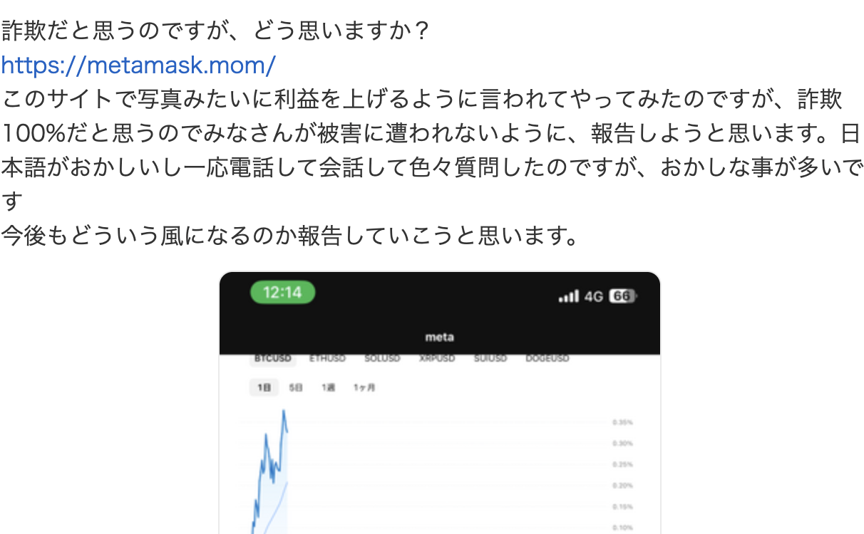 信頼できるレビューサイトや規制当局の情報から、metamask.momにはいくつかの懸念点が指摘されています。