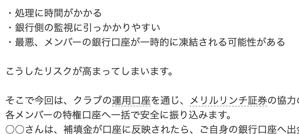 ・最悪、メンバーの銀行口座が一時的に凍結される可能性があるこうしたリスクが高まってしまいます。