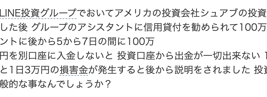 LINE投資グループでおいてアメリカの投資会社シュアブの投資運用口座に10万円入金した後 グループのアシスタントに信用貸付を勧められて100万円借りました アシスタントに後から5から7日の間に100万