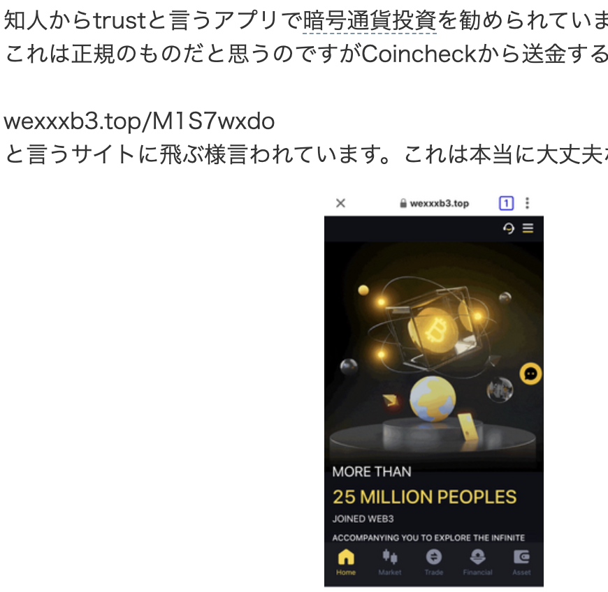 これは正規のものだと思うのですがCoincheckから送金するのにwexxxb3.top/M1S7wxdo