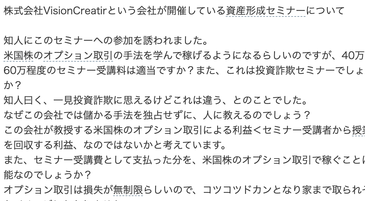 株式会社VisionCreatirという会社が開催している資産形成セミナーについて