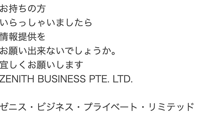 ZENITH BUSINESS PTE. LTD.ゼニス・ビジネス・プライベート・リミテッド