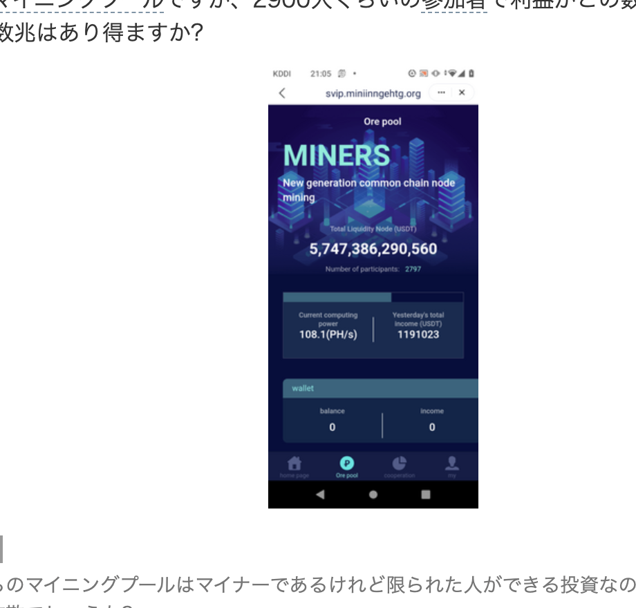 こちらのマイニングプールはマイナーであるけれど限られた人ができる投資なのでしょうか?それとも詐欺でしょうか?