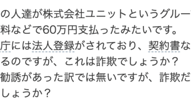 気になるネット上の口コミ(ヤフー知恵袋)タスクオーダー詐欺に合いまして、その件についてTiktokでカンア国際法律事務所の本澤庞酱氏という方に資金回収依頼をしました。ジェミニに後からこの法律事務所は実在するのか調べてもらったら該当事務所は出...