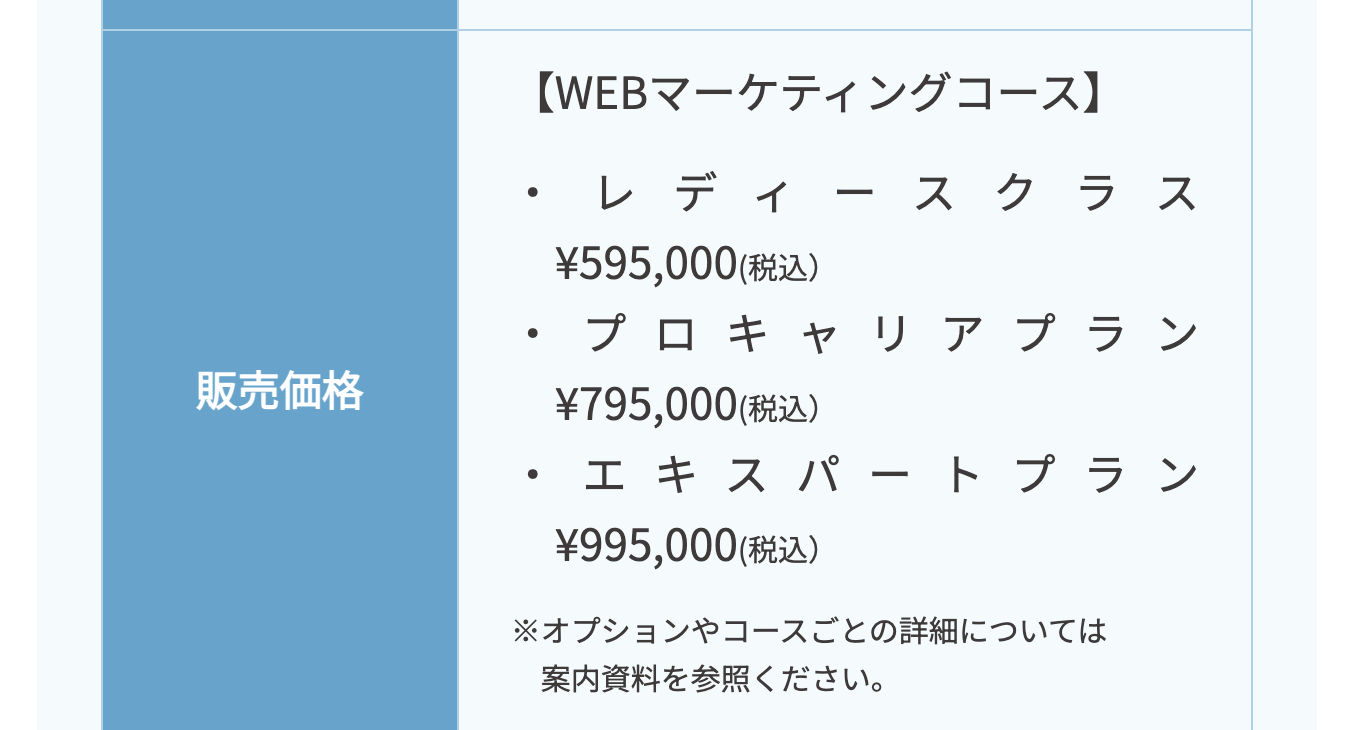 この会社のスクール代金は以下です。元が取れること可能性は極めて低いと言える値段です。