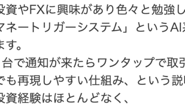 投資 マネートリガーシステムの気になる口コミ こんにちは。ネット上でマネートリガーシステムという投資プラットフォームを紹介されているというお悩みを耳にしました。そんな状況は本当に心配ですよね。まずは深呼吸して、落ち着いてください。一緒にこの問題を考えて、賢い選択ができるようサポートしま... 2026.01.17 投資