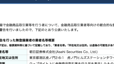 金融庁から警告 金融庁から警告、朝日証券株式会社(Asahi Securities Co., Ltd.)の投資には注意 あなたは今、富士証券株式会社(Fuji Securities Co., Ltd.)の投資に興味を持ち、本当に稼げるのかを知りたいのではないだろうか?また、富士証券株式会社(Fuji Securities Co., Ltd.)がどんな内容なの... 2025.10.23 金融庁から警告