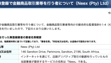 投資 Neex (Pty) Ltdに注意、金融庁から警告を受けています あなたは今、Neex (Pty) Ltdの投資に興味を持ち、本当に稼げるのかを知りたいのではないだろうか?また、Neex (Pty) Ltdがどんな内容なのかを調べようとしているのではないだろうか?答え、結論を言うと、Neex (Pty) ... 2025.12.05 投資