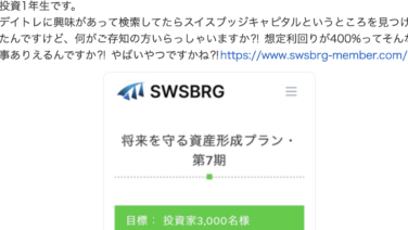 投資 将来を守る資産形成プラン、SWSBRG、スイスブリッジキャピタル(www.swsbrg-member.com/)を騙る投資に注意 気になる口コミ(ヤフー知恵袋より)投資1年生です。デイトレに興味があって検索してたらスイスブッジキャピタルというところを見つけたんですけど、何がご存知の方いらっしゃいますか⁈ 想定利回りが400%ってそんな事ありえるんですか⁈ やばいやつで... 2026.04.09 投資