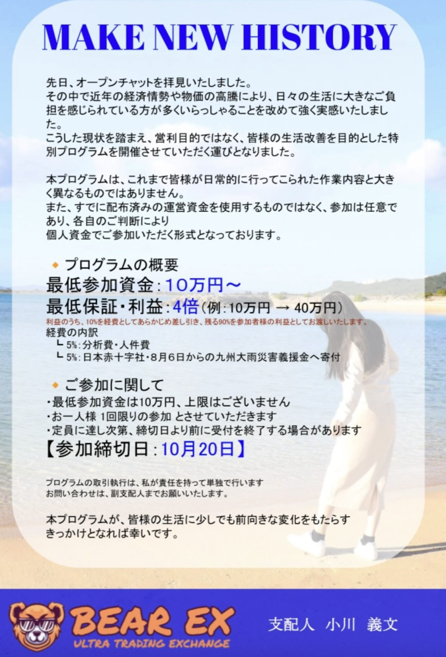 一年前から同じ手口で、MAKE NEW HISTORYに名前変えて同じことしてる様子がありますねえ。