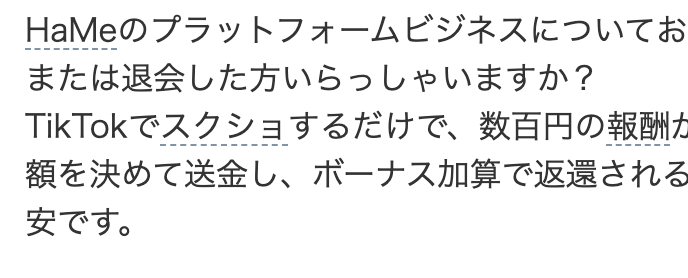 HaMeのプラットフォームビジネスについておわかりになる方いらっしゃいますか?または退会した方いらっしゃいますか?
