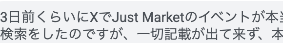 3日前くらいにXでJust Marketのイベントが本当なのか検索をしたのですが、一切記載が出て来ず、本日まんまと騙されてしまいました。