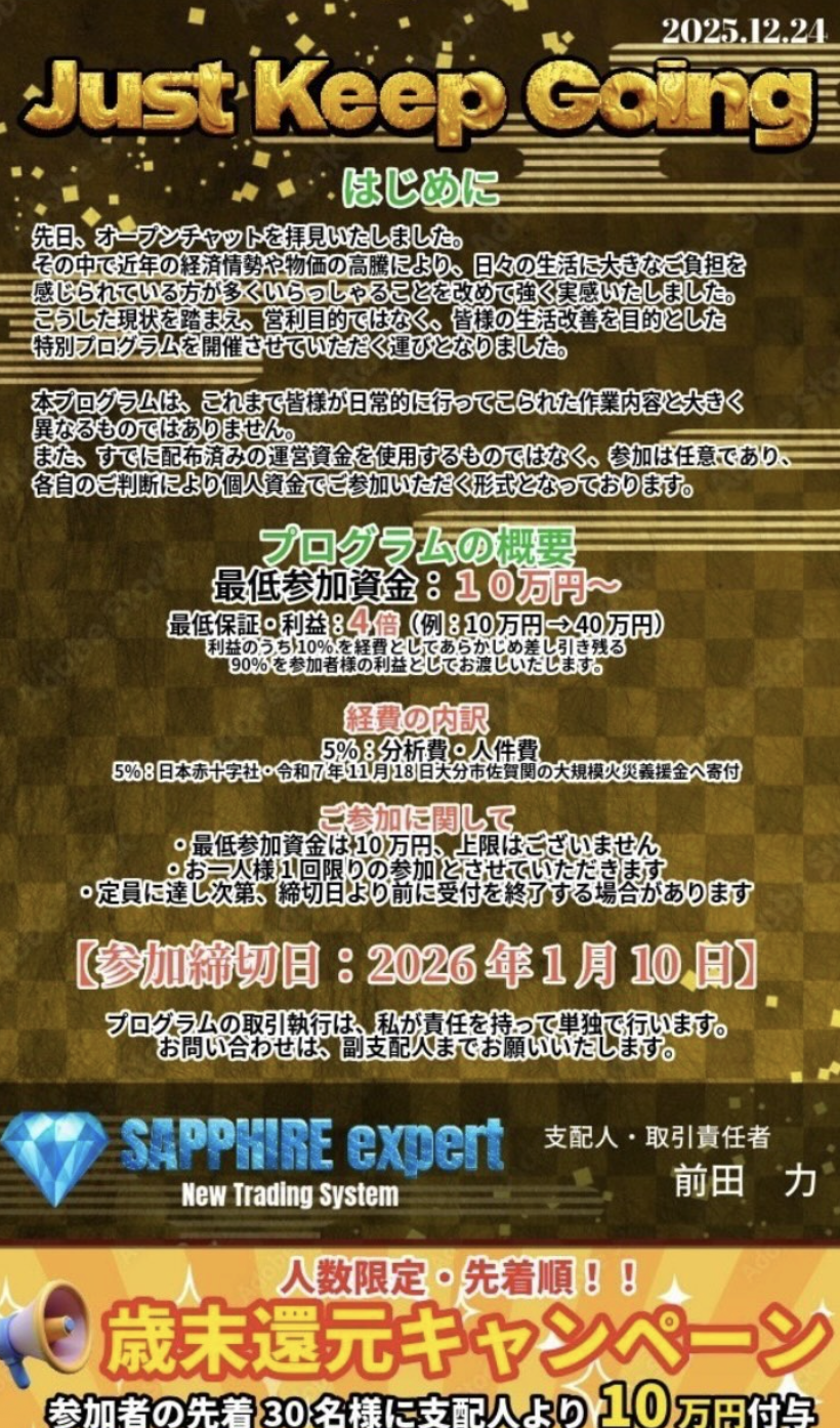 一年前から同じ手口で、JUST KEEP GOINGに名前変えて同じことしてる様子がありますねえ。